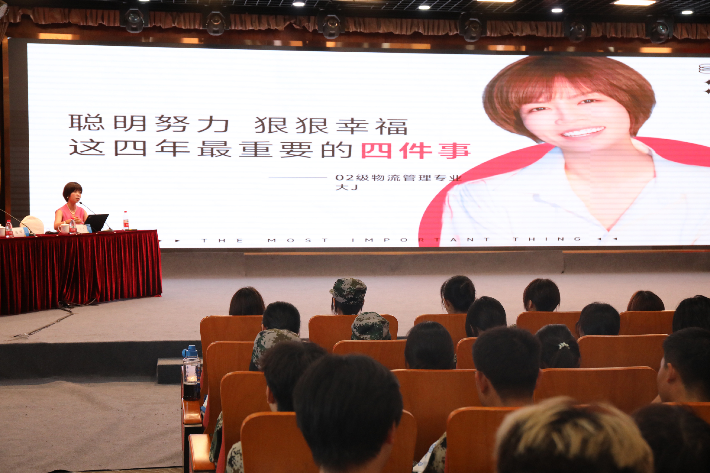 J以学姐的身份,向新生们讲述了自己的人生经历和经验感悟。她从“学习学什么”“实习干什么”“工作找什么”“恋爱谈什么”等四方面,向大家分享了她认为大学最重要的几件事。她认为,所谓“自律”,就是尽快把“必须做的事”做好,从而赢得更多时间做“自己想做的事”。她希望学弟学妹们珍惜大学时光,要学好专业知识,锻炼实践能力,最终获得“选择的自由”,做自己人生的CFO