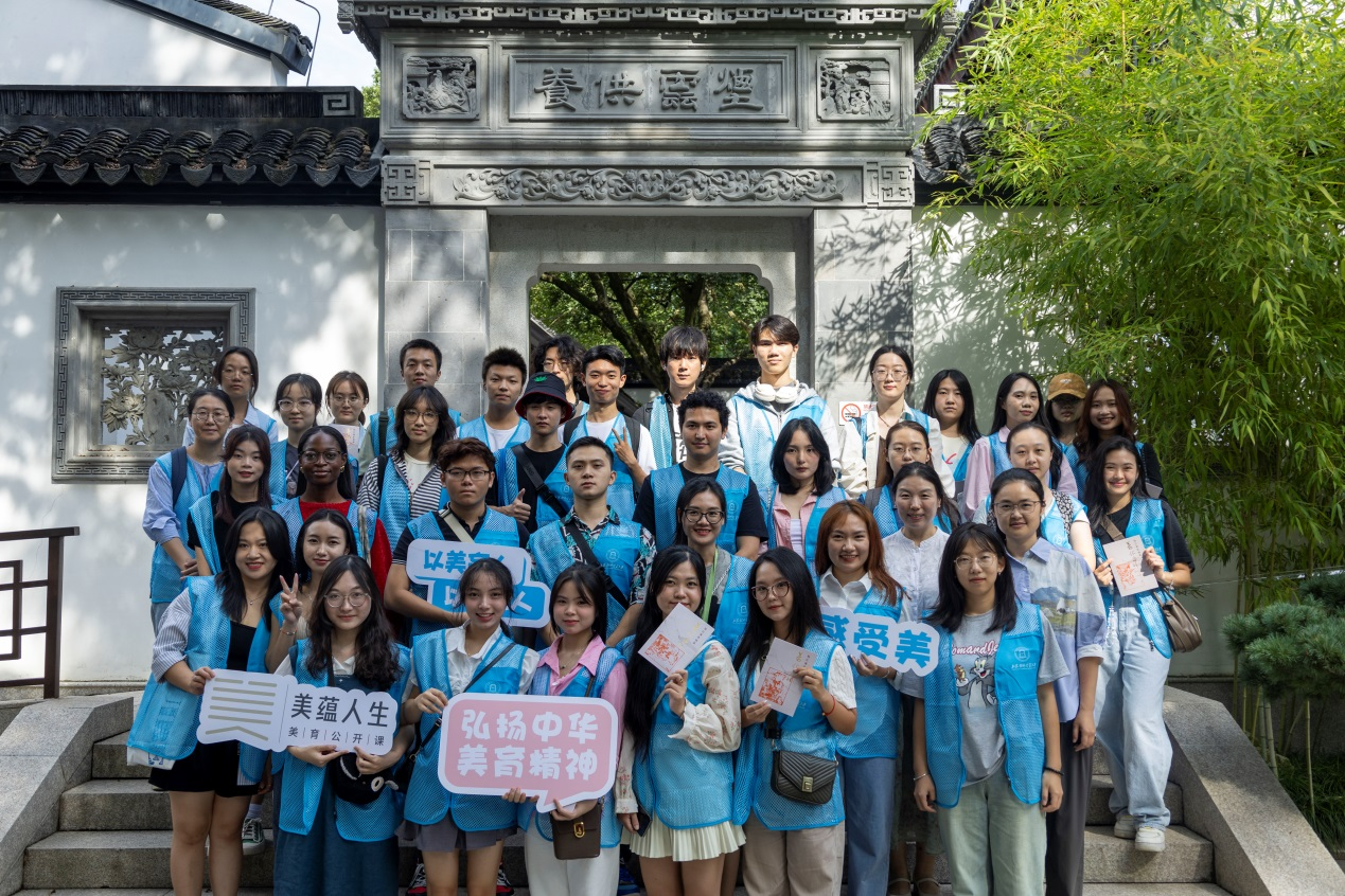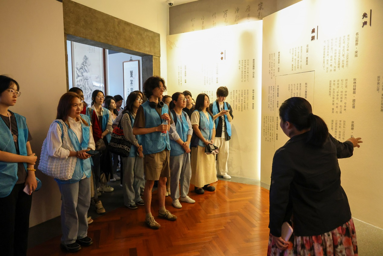 9月27日下午,上海对外经贸大学“美蕴人生”美育公开课第四课开课,40余名学生走进位于松江醉白池公园的董其昌书画艺术博物馆,开展“万化由心——松江画派特展”赏析活动。值得一提的是,这次课堂中超过半数的学生是对中国传统文化感兴趣的留学生,这也是美育公开课开展以来,留学生报名人数最多的一次。