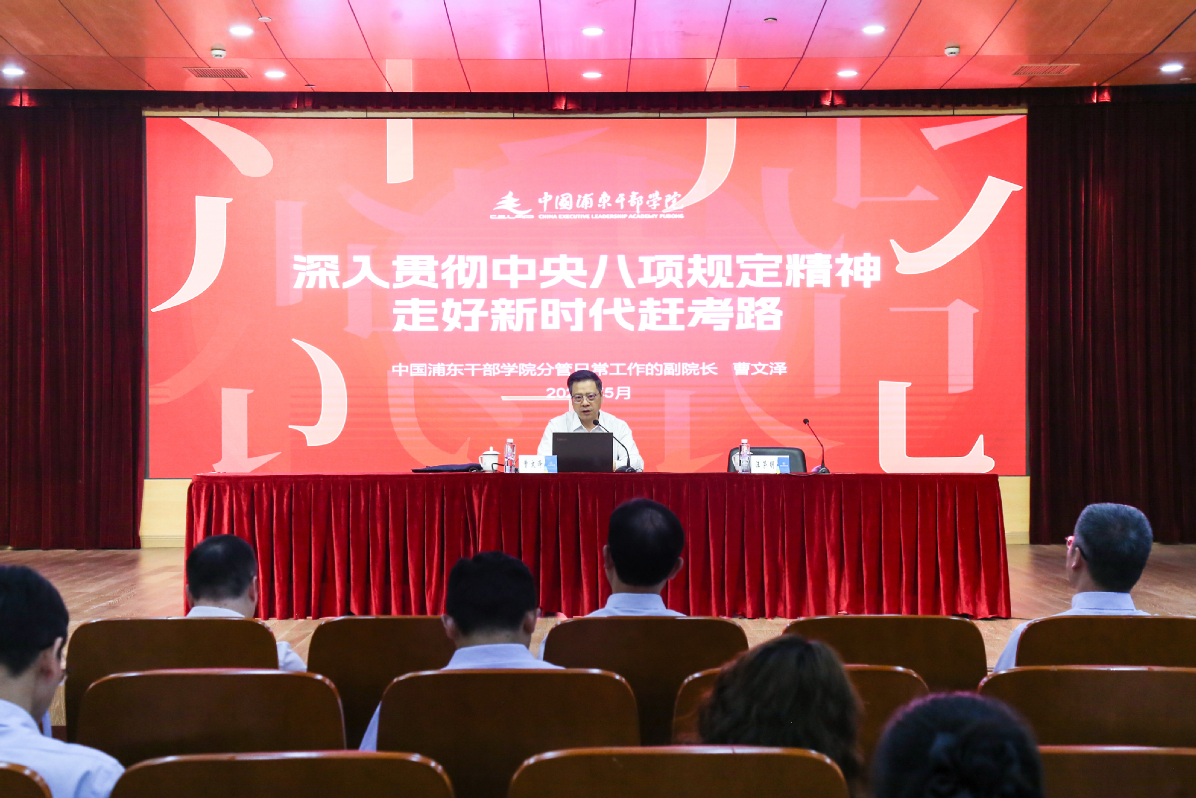 为进一步深入学习领会中央八项规定及其实施细则精神,及时跟进学习领会习近平总书记关于加强党的作风建设的重要论述,527日下午,学校在长宁校区综合楼506报告厅举行中心组学习(扩大)会,邀请中国浦东干部学院分管日常工作的副院长曹文泽教授作主题为“深入贯彻中央八项规定精神,走好新时代赶考路”的专题辅导报告。会议由校长汪荣明主持。