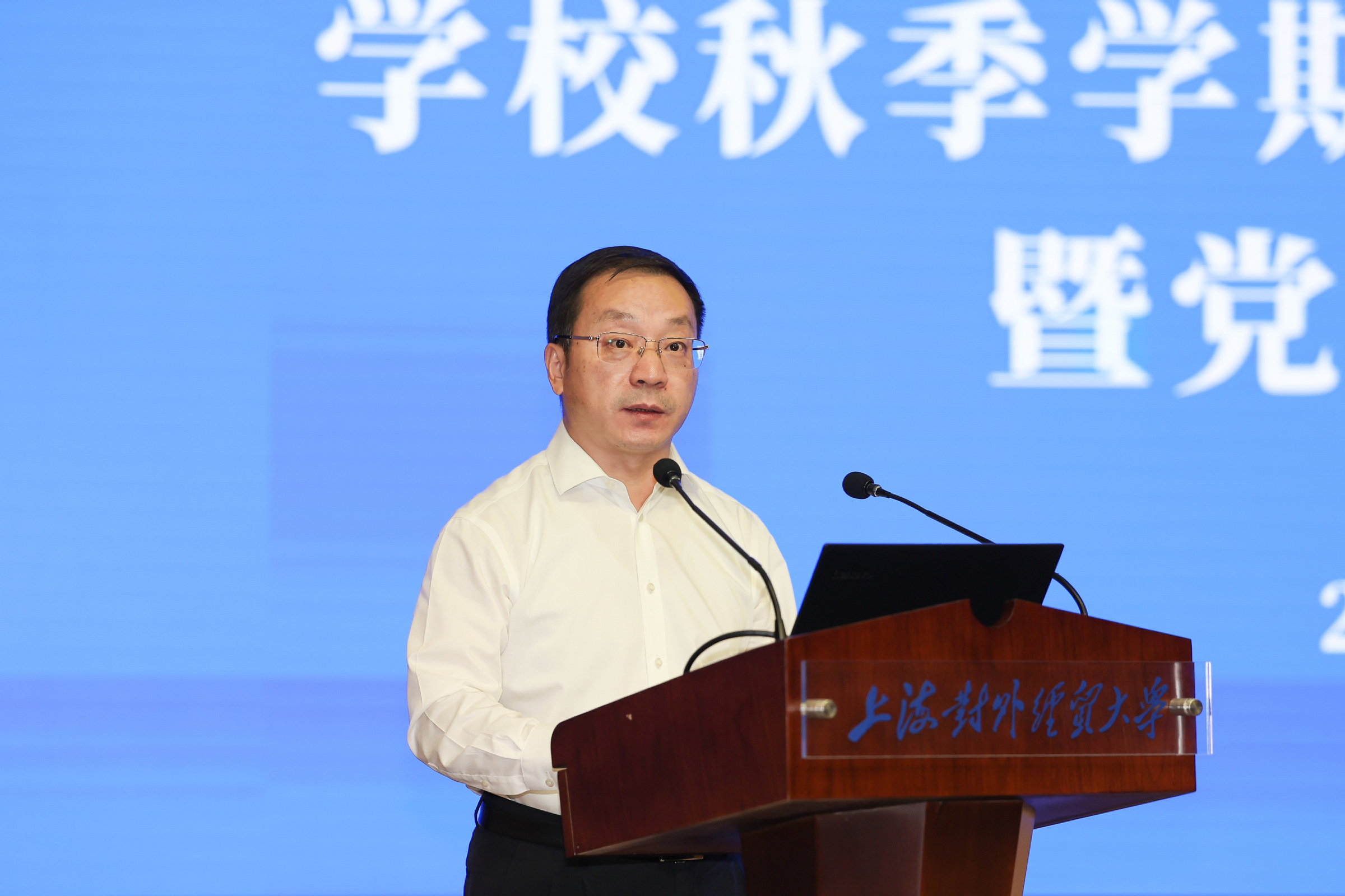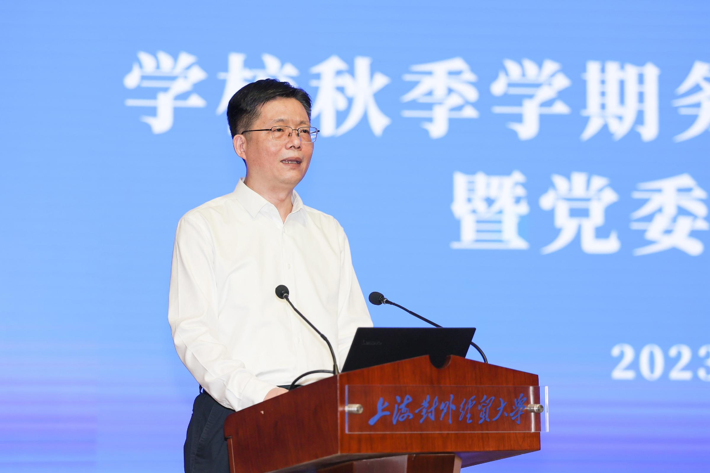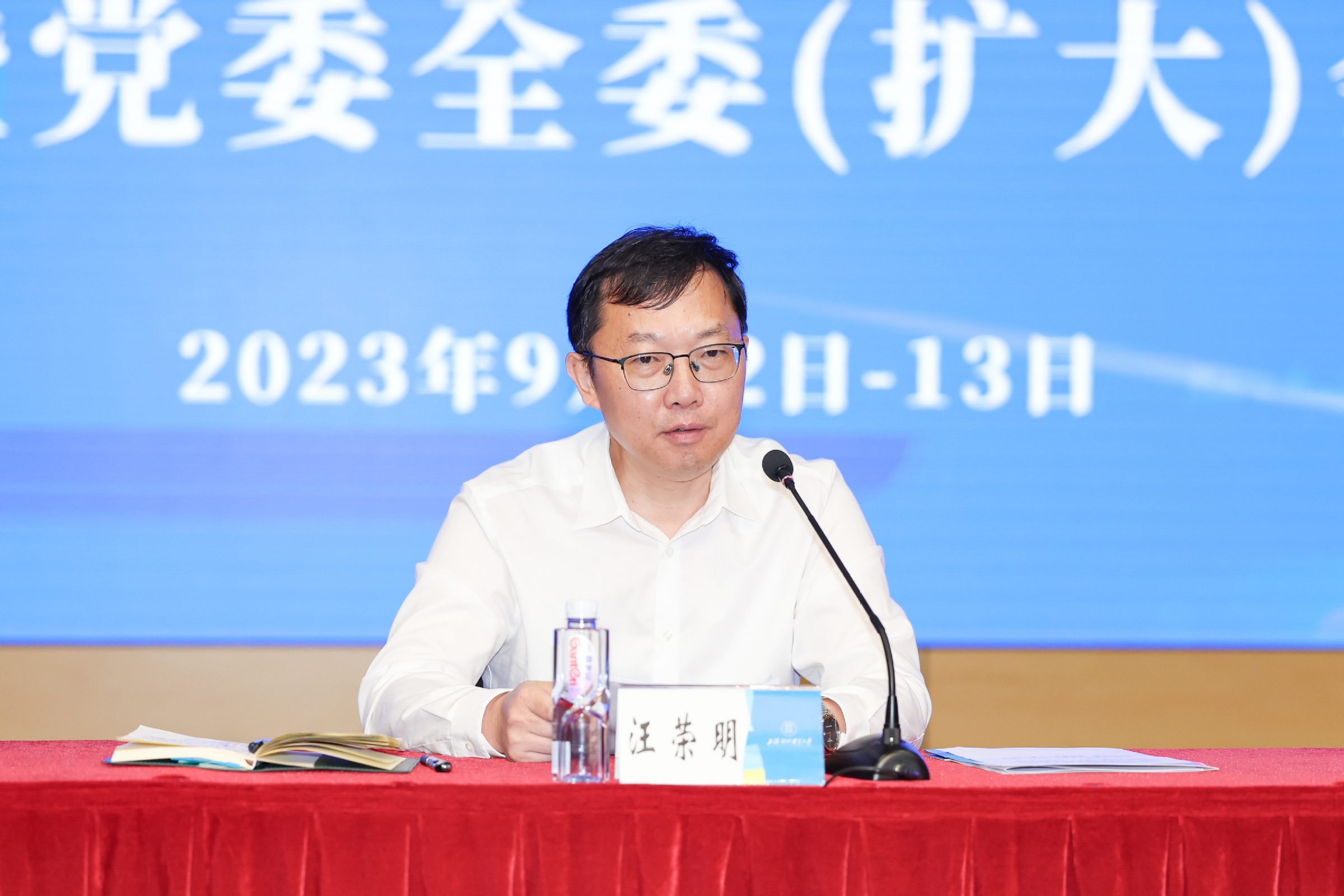 9月12-13日,学校2023年秋季学期务虚会和干部教师大会暨党委全委(扩大)会在古北校区综合楼506报告厅召开。本次会议以习近平新时代中国特色社会主义思想为指导,以“踔厉奋发谋发展,笃行不怠开新局”为主题,围绕学校对外战略合作交流、国际组织人才培养等重要领域,通过主旨报告、分组研讨等形式开展学习和交流。学校领导班子成员,全体党委委员、纪委委员、中层领导人员,部分党代会代表、教代会代表,民主党派、无党派人士、统战团体代表,党支部书记代表、科研骨干代表、青年教师代表等出席会议。校党委书记殷耀作动员讲话,校长汪荣明作总结讲话。校党委副书记、副校长祁明,党委副书记、纪委书记章益国分别作主旨报告,校党委副书记吴毅、副校长徐永林分别主持会议相关环节并对主旨报告作点评。