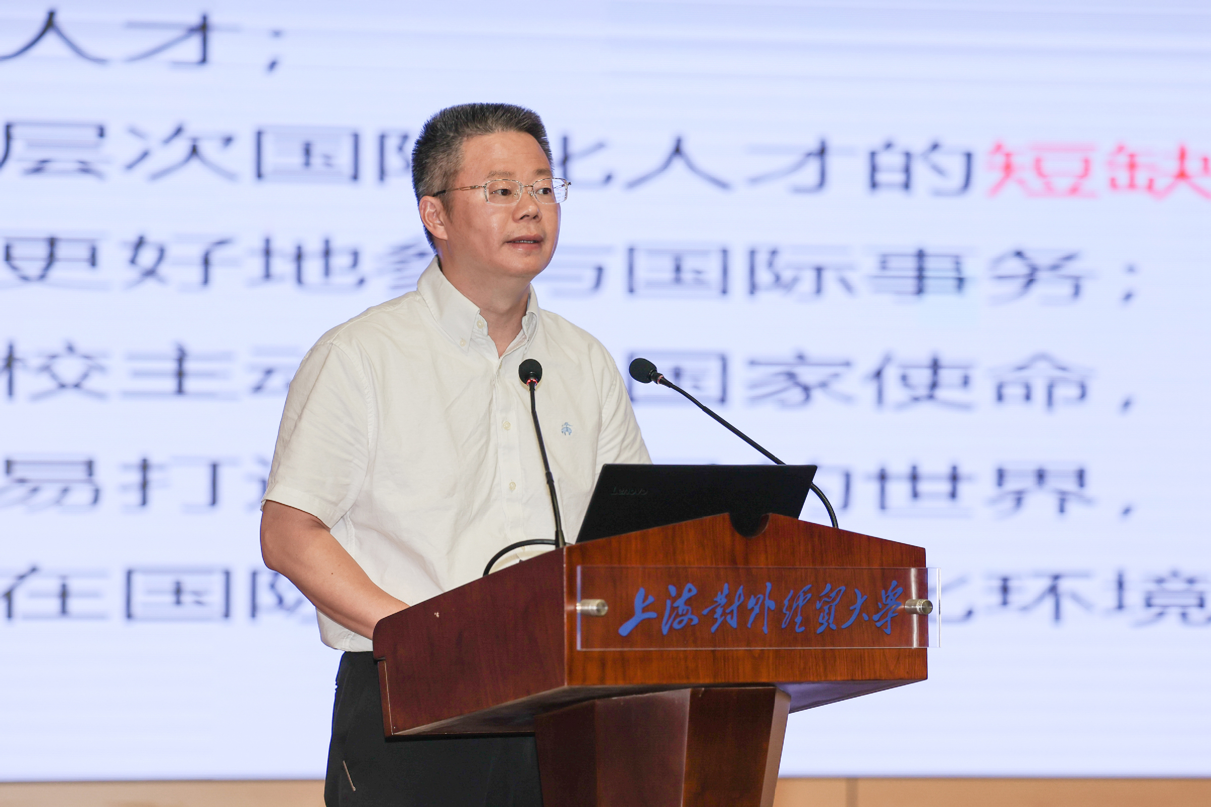 祁明作了题为“抢抓机遇 善作善成 全面提升对外战略服务能级——上海对外经贸大学对外战略合作的实践与思考”的主旨报告。报告中,祁明研判了高校对外战略合作的发展趋势,分析了学校对外战略合作的现状与问题,阐述了学校与临港新片区的战略合作意义、思路、举措,并重点就与临港战略合作中如何完善机构设置,创新人才引进、人才培养、教职工流动、激励考核机制谈了自己的思考。