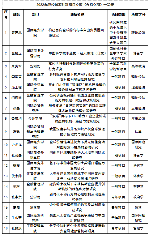9月13日,全国哲学社会科学工作办公室公布了2022年国家社科基金年度、青年和西部项目的拟立项名单,我校共获得国家社科基金项目立项15项。截至目前,2022年我校国家社科基金项目共获得立项18项,其中国家社科基金重大项目1项目、国家社科基金中华学术外译项目1项、国家社科基金教育学项目1项。与我校往年申报情况相比,2022年国家社科基金项目无论立项数还是立项率,均为历史最高。