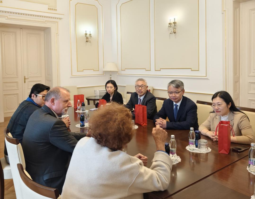 5月26日下午,代表团及萨大孔院中外方院长走访了中国驻克罗地亚大使馆,并与齐前进大使及使馆相关工作人员进行了座谈。祁明代表学校对使馆的历届领导多年来对萨大孔院给予的关心、指导和大力支持表示衷心的感谢,并介绍了学校的基本情况以及学校与中东欧高校和海外中资企业合作情况。齐前进大使对访问团的到来表示欢迎,对我校重视与中东欧地区尤其是与克罗地亚的教育文化交流合作表示充分肯定,希望我校继续建设好萨大孔院,为两国在人文、教育、经贸等领域的友好往来发挥更大作用。