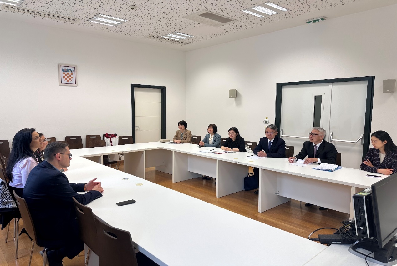 5月26日上午,代表团与萨格勒布大学副校长Jasenka Ostojic教授、经济学院院长Sanja Sever Mališ教授、经济学院副院长 Zoran Krupka教授及萨大孔院中外方院长等进行了会谈。祁明高度赞赏了两校多年来的长期友好合作,对萨格勒布大学历任领导给予萨大孔院的大力支持表示诚挚感谢。他表示,我校正在积极打造高水平高校智库、研究基地、国别区域研究中心等科研平台,为服务上海乃至中国经济社会发展献智赋能。在推进国际化办学战略过程中,将加强与萨格勒布大学的合作,在应用经济学、信息统计、人工智能、旅游会展、文化产业等方面推进联合人才培养、科学研究和社会服务,并希望两校齐心协力,积极支持萨大孔院特色发展。