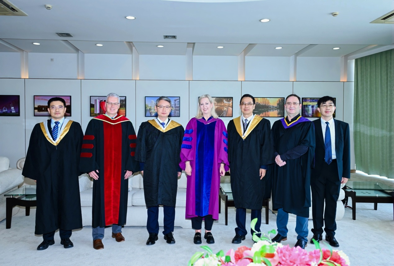祁明对远道而来参加毕业典礼的各位嘉宾表示热烈欢迎,向圆满完成学业的毕业生和家长表示热烈祝贺。他表示,中加合作项目开展27 年来,双方不断增进了解和友谊,持续深化在人才培养上的合作,取得了显著的教育教学成果,许多毕业生在不同的领域为经济发展与社会进步贡献重要力量。他对合作项目毕业生提出三点希望:一是以金融为器,筑梦家国宏图。始终牢记“金融报国、管理为民”的初心,将个人梦想和实践力量融入国家发展大局中。二是以合作为桥,拓展全球视野。带着上经贸大的国际化底色,在变化中找到人生坐标,勇敢迈向更宽阔的国际舞台,成为联接中外友谊的桥梁。三是以实干为本,回应时代呼唤。以实际行动诠释责任与担当,不断成为推动社会进步、引领时代发展的中坚力量。