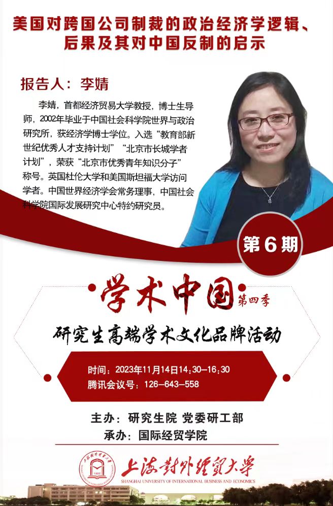 学术中国(第四季)第6期讲座—美国对跨国公司制裁的政治经济学逻辑、后果及其对中国反制的启示