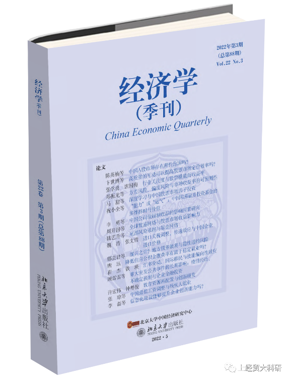 以铁瑛副研究员为通讯作者的合作论文《汇率变动、国际移民与技能偏向性效应》,在国内经济领域的权威期刊《经济学(季刊)》发表(2022年第3期),其合作者崔杰系我校2015级硕士研究生,现在山东大学经济学院攻读博士。《经济学(季刊)》(China Economic Quarterly)创刊于2001年,主要发表原创性的理论、经验、综述和评论性的中文经济学论文,是国内公认的经济学权威期刊,该期刊被我校列为A1类期刊。