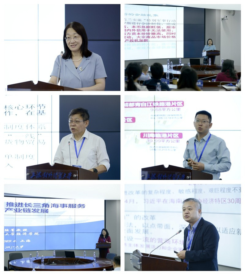 研讨会的主旨演讲环节由上海对外经贸大学国际经贸研究所所长、国际发展合作研究院院长黄梅波教授主持。上海社会科学院世界经济研究所副所长(主持工作)赵蓓文研究员、上海财经大学中国自由贸易试验区协同创新中心首席专家孙元欣教授、中国(四川)自贸试验区综合研究院执行院长助理邓富华副教授、浙江大学经济学院陆菁教授、海南省开放型经济研究院院长李世杰教授、复旦大学罗长远教授分别作主旨演讲。