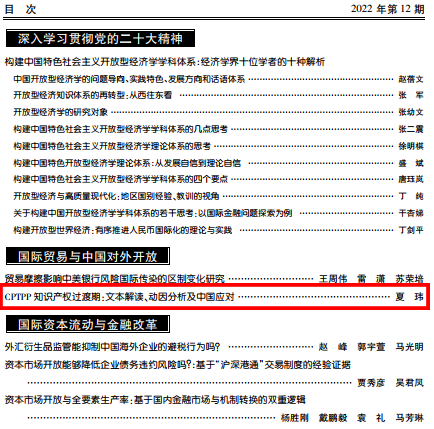 在《世界经济研究》2022年第12期