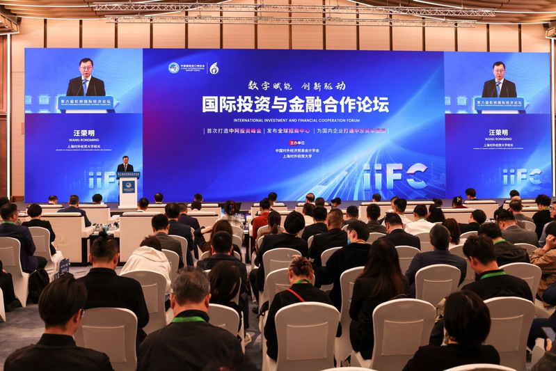11月8日下午,第六届中国国际进口博览会“2023国际投资与金融合作论坛”在上海国家会展中心举行。本次论坛由中国对外经济贸易会计学会与上海对外经贸大学联合主办,上海市虹口区人民政府等为支持单位。论坛主题为“数字赋能创新驱动,构建投融资国际合作新局面”,旨在促进中国与阿拉伯国家地区更深层次的经济合作,助推上海建设具有全球影响力的科创中心。国际组织、外交使节、国际金融领域专家学者、金融机构负责人、经贸界代表及媒体代表等近500人参加论坛。