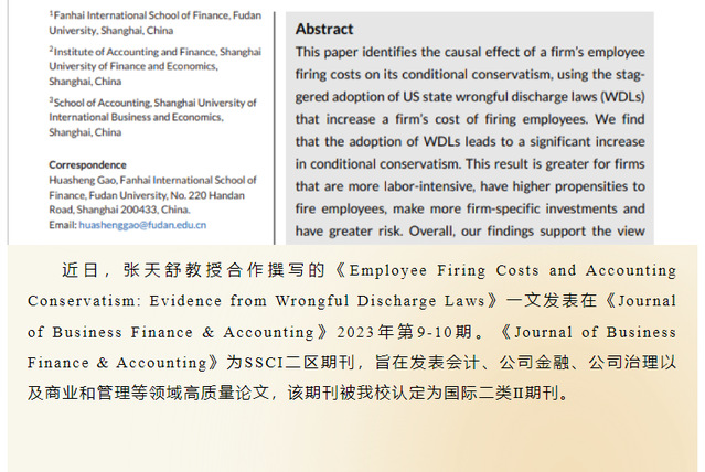 学术前沿|张天舒教授合作撰写的论文发表在《Journal of Business Finance & Accounting》