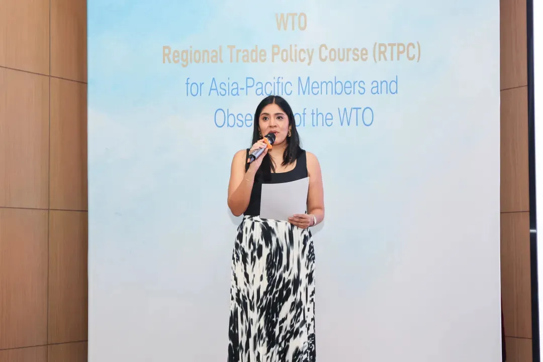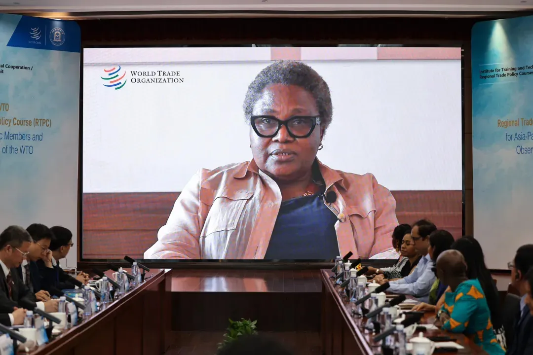 Bridget Chilala在致辞中祝贺各位学员顺利完成本次区域贸易政策课程。她表示,区域贸易政策课程旨在增强学员对世贸组织规则的了解,提高学员利用世贸组织信息资源的能力。本次培训将第十三届部长级会议的成果、亚太地区的贸易便利化、投资便利化、电子商务和数字贸易等议题纳入课程,体现了世贸组织技术援助对于当前热点议题的适应性和回应性。她对中国政府和中国常驻世贸组织代表团为世贸组织技术援助做出的贡献表示由衷感谢。