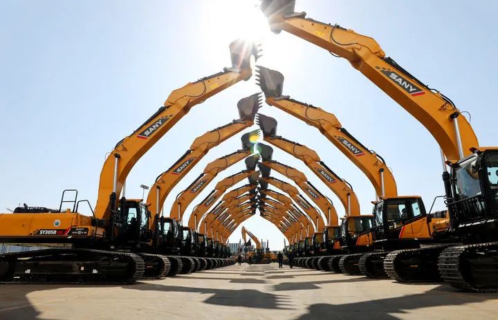 位于上海自由贸易试验区临港新片区的三一重工产业园成品车停车场(2021年5月30日摄)。