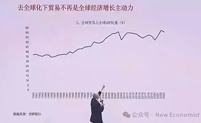 理解这一点特别重要,因为这是我们所有人的约束。经济下滑,地缘政治变化引起很大变化,所以贸易发生了很大的变化,其实贸易从2008年就开始变化,大家可以看到,贸易全球增长很快,从30%涨到60%2008年左右,其中涨的特别快的就是2001年、2002年到2008年,这是什么?这是中国加入WTO