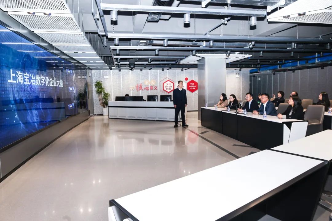 仪式开始前,学校领导一行参观了上海宝冶展示厅和数字化企业大脑。