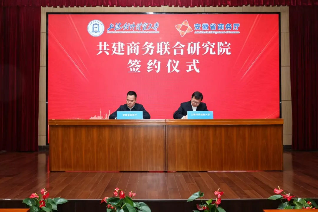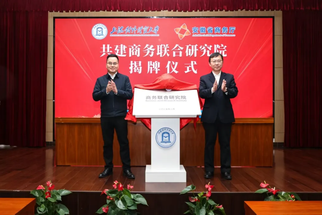2月14日上午,上海对外经贸大学与安徽省商务厅共建“商务联合研究院”(以下简称“研究院”)签约揭牌仪式暨研究院工作委员会第一次会议在学校长宁校区举行。安徽省商务厅党组书记、厅长孙东海,上海对外经贸大学校长汪荣明、副校长姜秀珍,以及双方相关单位和部门负责人出席仪式。仪式及会议由姜秀珍主持。